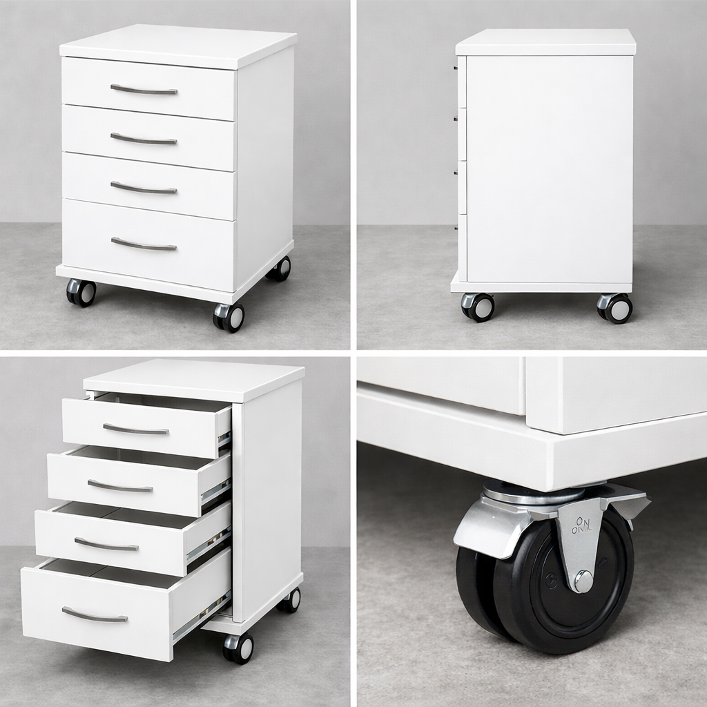 Clinic workflow first — organized storage, smooth drawer operation, and stable mobility in tight spaces.